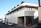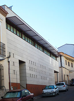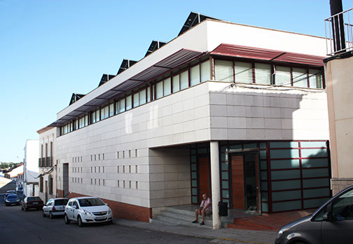 Esta actuación se desarrolló en dos alturas sobre rasante y únicamente dos fachadas, dada la existencia de edificios anexos en las medianeras. En planta baja se dispusieron el vestíbulo de acceso y una gran sala multiusos que podía subdividirse en tres salas más pequeñas en función de las actividades desarrolladas, permitiendo una gran flexibilidad de uso. En la planta primera se distribuyeron despachos de reunión y aulas-taller para actividades formativas. En la parte posterior de la parcela se generó un amplio patio. La composición exterior tenía como fin potenciar la imagen institucional acentuando la sencillez volumétrica del edificio. Se jugó con los materiales de revestimiento para dar una respuesta integradora entre el espacio interior y exterior del edificio, así como para alcanzar la armonía con el entorno edificado. De esta manera el edificio se asienta sobre un gran zócalo de ladrillo que resolvía el pronunciado desnivel de la calle. Sobre él se desarrolla la zona central de la fachada, prácticamente ciega dada la nula necesidad de que la sala multiusos se abriera a la calle, y revestida con piedra caliza pulida sin abrillantar para no desentonar con la arquitectura del lugar. Para rematarla se abrió una hienda acristalada que ilumina el interior destinado a despachos, cubierta por una marquesina que lo protege del soleamiento directo en las épocas de más intensidad.